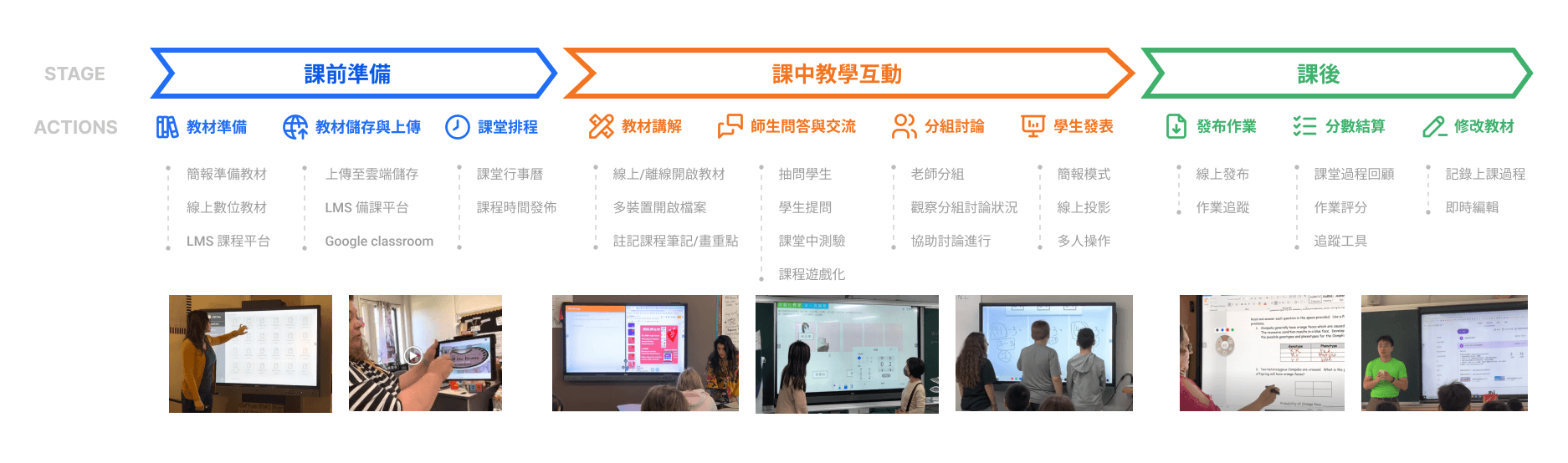 隨著越多的學校更換教室內的數位電子白板,為了提供更貼近使用者的服務品質,於是我們從教學工作的場景出發,進入教學現場研究與測試,從老師們的角度了解教學過程中的任務需求,專注於提升老師們使用白板軟體上課時的用戶體驗。